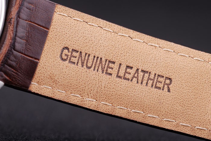 Bracelet: Brown crocodile leather strap with white thread stitching and heat embossed Audemars Piguet name and logo and an Audemars Piguet inscribed stainless steel flip-over hook clasp