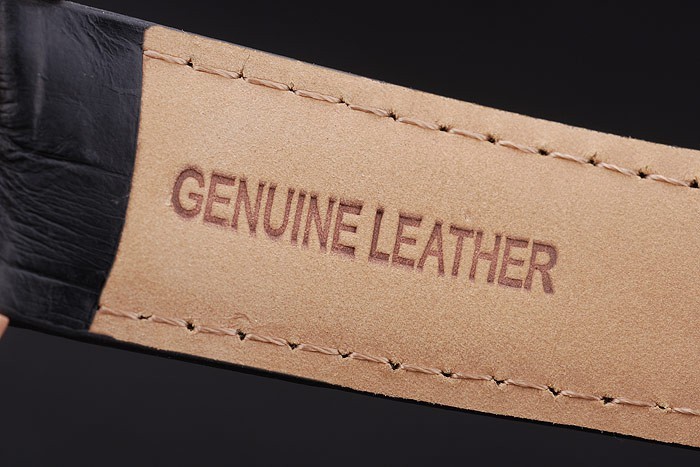 Bracelet: Black crocodile leather strap with heat embossed Audemars Piguet name and logo and an Audemars Piguet inscribed 18k rose-gold plated flip-over hook clasp