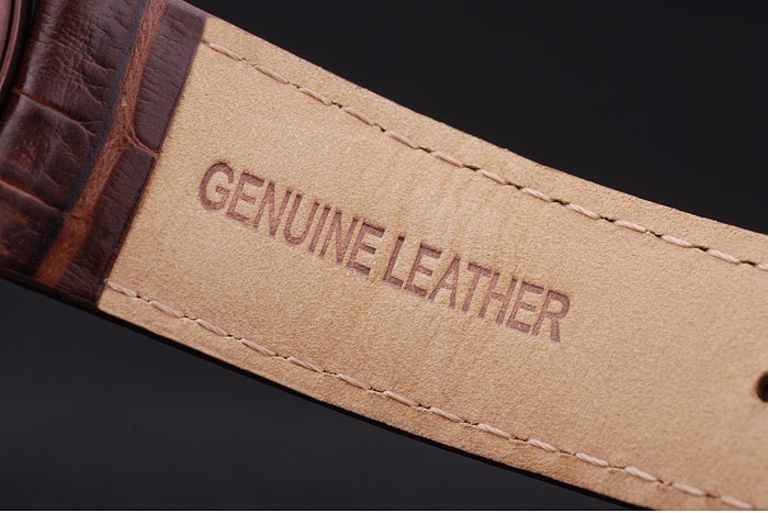 Bracelet: Brown crocodile leather strap with heat embossed Audemars Piguet name and logo and an Audemars Piguet inscribed burgundy stainless steel flip-over hook clasp