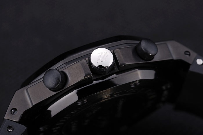 Crown: Stainless steel Audemars Piguet logo engraved ion-plated cutwork crown with two small ion-plated crowns on either side of it