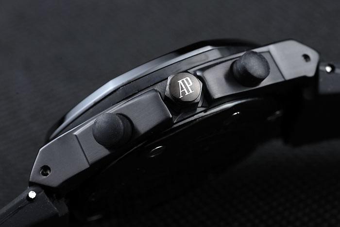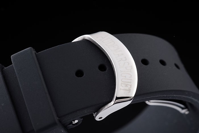 Bracelet: Audemars Piguet embossed black rubber strap with Audemars Piguet engraved rose-gold fold-in clasp