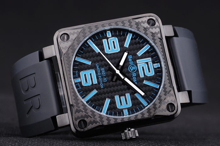 Bracelet: Bell&Ross logo and product code embossed black rubber strap with ion-plated hook-buckle clasp