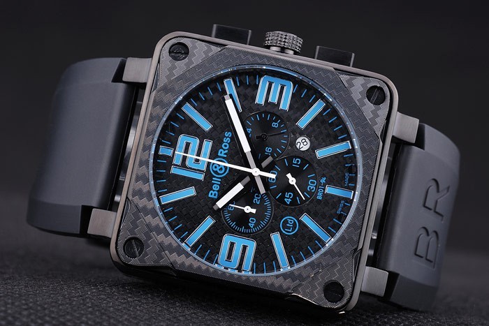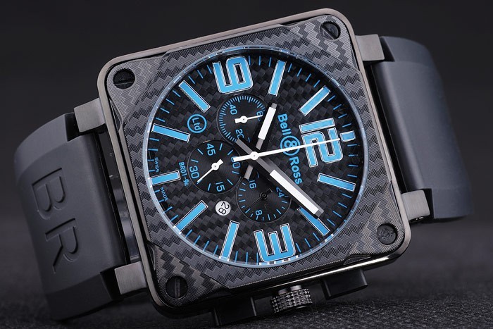 Bracelet: Heat embossed Bell&Ross logo and product code black rubber strap with ion-plated hook-buckle clasp
