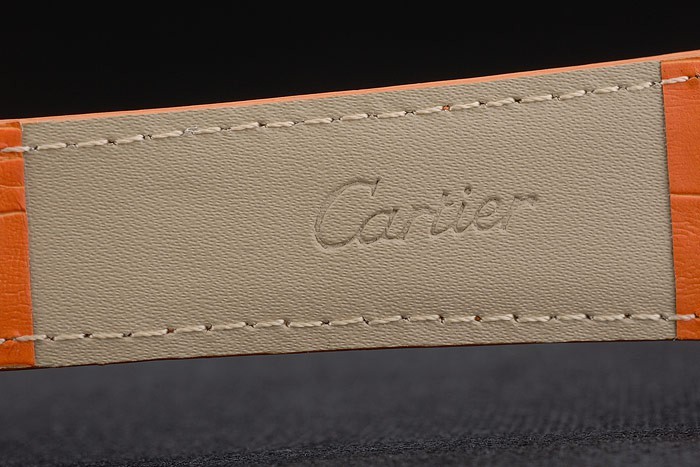 Bracelet: Cartier heat embossed orange crocodile leather strap with 18k rose-gold plated fold-in buckle clasp