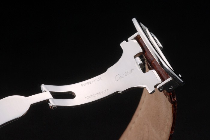 Back: Brushed stainless steel screwed down back with Cartier engravings