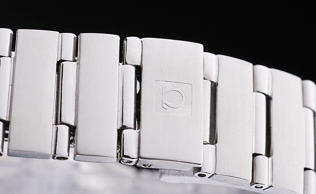 Crown: Polished stainless steel cutwork crown with Omega logo