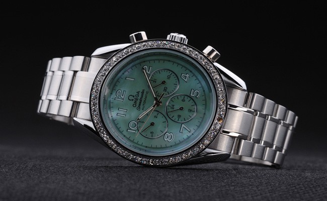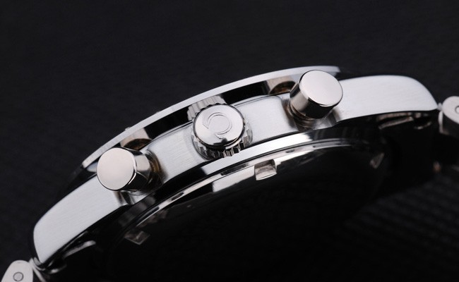 Crown: Polished stainless steel cutwork crown with Omega logo plus two additional crowns, one on either side of it