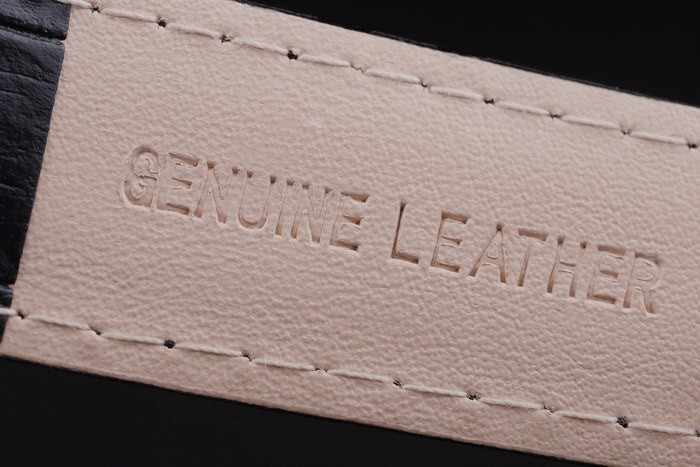 Bracelet: Black leather strap with Patek Philippe stamp and a stainless steel hook buckle clasp