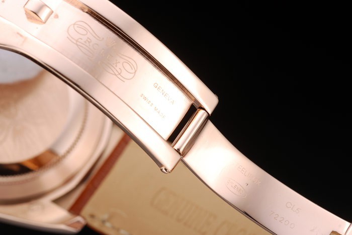 Back: Rose-gold plated snap-in back with Rolex engravings