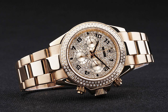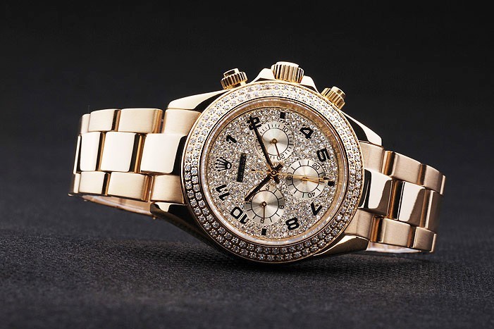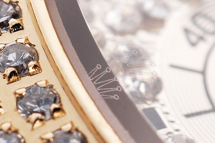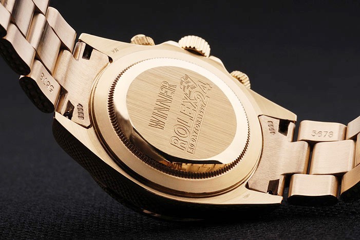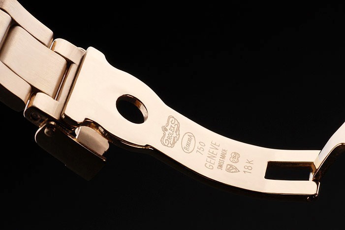 Back: Gold-toned stainless steel push-in case back with Rolex engraving