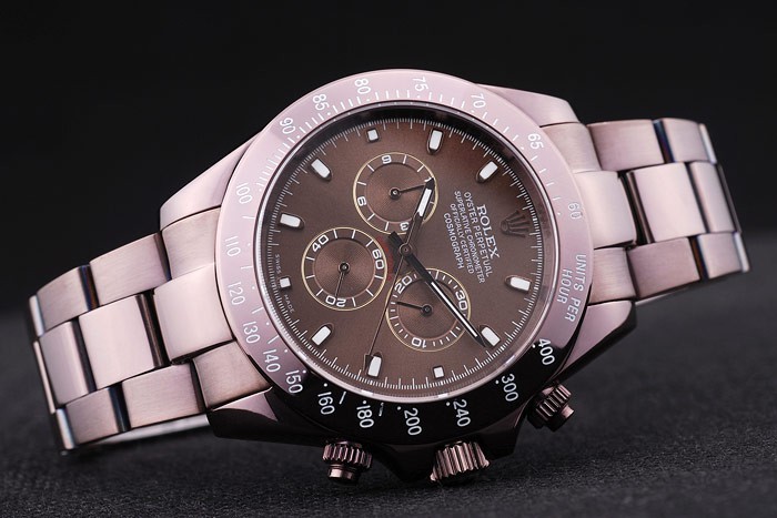 Il design robusto del Rolex RL340 emerge nelle dimensioni generose della cassa, con un diametro di 50 x 42 mm e uno spessore di 13 mm, ideale per chi preferisce un orologio con una forte presenza estetica. La corona principale, rifinita in acciaio con incisione del logo Rolex, è affiancata da due piccoli pulsanti che ne amplificano la funzionalità e il carattere tecnico. La lunetta in tinta rosata, completa di indicatori di unità orarie, si integra perfettamente con il bracciale a maglie in acciaio inossidabile trattato, fornito di chiusura di sicurezza con logo Rolex a scomparsa.